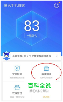 手机在使用一段时间之后,会产生很多应用缓存、卸载残留、垃圾文件等,这些都会拖慢系统调用文件的速度,如何可以有效提高手机运行速度,定期进行手机垃圾清理呢?方法如下,使用腾讯手机管家点击一键优化,释放系统内存、清理缓存垃圾等,还可以直观的看到清理出了多少内存空间。