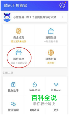 将手机中安装的各种软件,根据使用频率进行分类,区分出常用、不常用及无用软件。无用软件不光会占用手机内存,还可能会在后台自启运行,导致系统被拖慢,可以通过“腾讯手机管家”的“软件管理”功能将无用软件一键卸载。