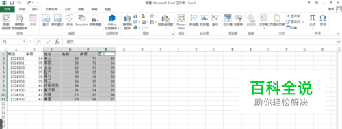 按住ctrl键,选择你要做成图表的数据的那一行或者那一列。比如我选择姓名,高数,英语,语文这四列。