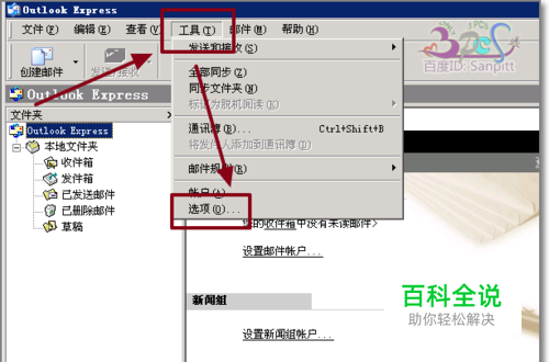打开Outlook Express软件,点击工具-选项。