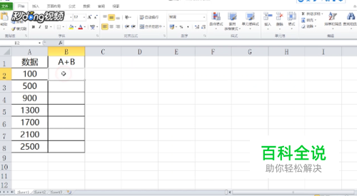 首先准备好素材,A+B的意思就是用前面的单元格加上现在的单元格本身。