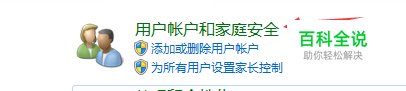 打开控制面板,点击程序,找到“用户账户和家庭安全”按钮。
