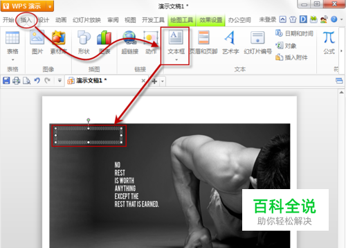 1.先后分别插入图片、文本框,如图: