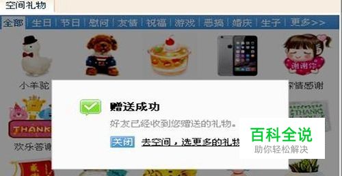 然后,会弹出一个赠送成功的方框,这样我们就成功地给好友赠送了礼物。