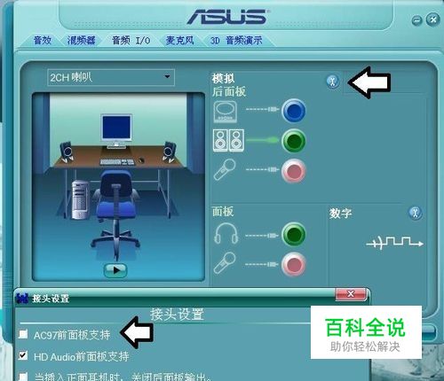 点击小扳手→接头设置→勾选AC97前面板支持→OK,通常都能解决问题。