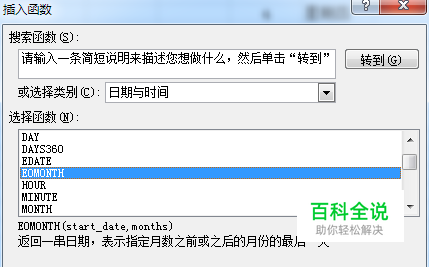 函数EOMONTH(start_date,months),返回 start-date 之前或之后指定月份中最后一天。正数为之后,负数为之前,0为当前月份。