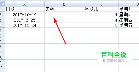如图表格,计算出日期对应的天数。