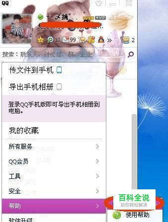 点击帮助以后出现侧拉菜单,在侧拉菜单上面点击我的qq中心,如图所示: