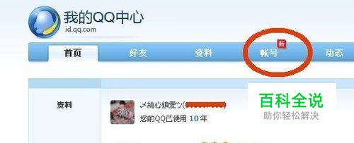 点击我的qq中心以后进入到我的qq中心页面,在页面上面点击账号,如图所示: