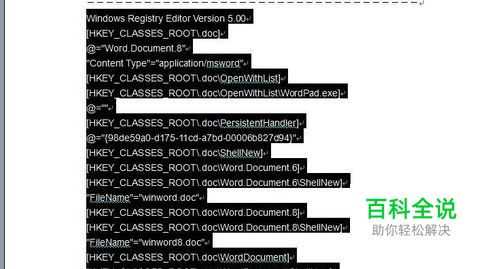 ----------------------------------- Windows Registry Editor Version 5.00 [HKEY_CLASSES_ROOT\.doc] @="Word.Document.8" "Content Type"="application/msword" [HKEY_CLASSES_ROOT\.doc\OpenWithList] [HKEY_CLASSES_ROOT\.doc\OpenWithList\WordPad.exe] @="" [HKEY_CLASSES_ROOT\.doc\PersistentHandler] @="{98de59a0-d175-11cd-a7bd-00006b827d94}" [HKEY_CLASSES_ROOT\.doc\ShellNew] [HKEY_CLASSES_ROOT\.doc\Word.Document.6] [HKEY_CLASSES_ROOT\.doc\Word.Document.6\ShellNew] "FileName"="winword.doc" [HKEY_CLASSES_ROOT\.doc\Word.Document.8] [HKEY_CLASSES_ROOT\.doc\Word.Document.8\ShellNew] "FileName"="winword8.doc" [HKEY_CLASSES_ROOT\.doc\WordDocument] [HKEY_CLASSES_ROOT\.doc\WordDocument\ShellNew] "FileName"="winword2.doc" [HKEY_CLASSES_ROOT\.doc\WordPad.Document.1] [HKEY_CLASSES_ROOT\.doc\WordPad.Document.1\ShellNew] "NullFile"="" -----------------------------------