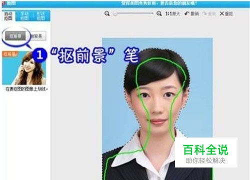 进入“自动抠图”界面,选择“抠前景”笔在需要的人物画面上涂抹即可(如果发生错误可以用“删背景”笔涂抹错误部分即可)。完成后单击“完成抠图”,
