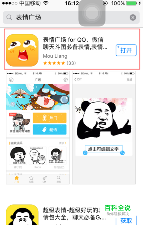 首先在手机上安装关键工具--表情广场,在app store中搜索下载即可。 安装完成后打开表情广场,在底部找到DIY板块,点击进入。