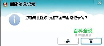 然后在左边的联系人部分会有你QQ上面所有群组,在你要删除的群组上右键会出来删除消息记录,点击之后会出来如下图片,点击“是”即可。