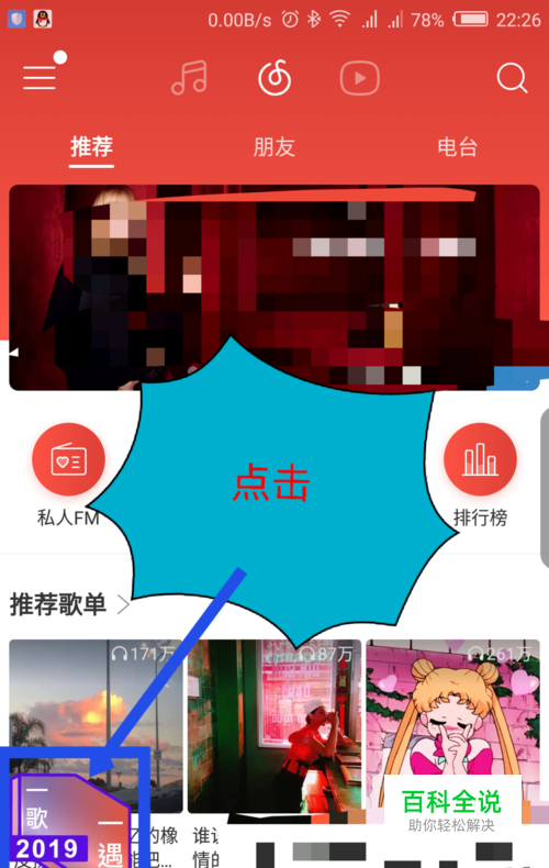 打开网易云音乐,在打开的默认的界面,能看到左下角有个悬浮窗口,写着2019,点击一下。如图所示