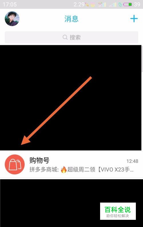 点击购物号所发来的消息,进入下一界面。可以看到购物号的全称,点击购物号的名称。