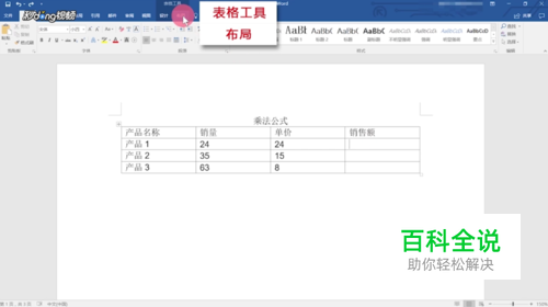 打开Word文档,点击表格中需要计算的地方,点击表格工具中的“布局”选项卡。