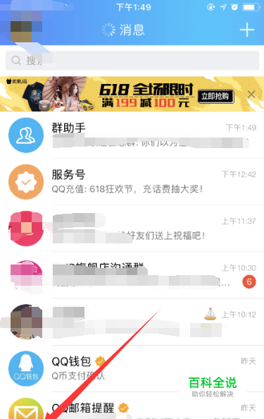 接下来进入qq消息页面,如下图所示,点击页面上的qq头像入口,在页面的走上方。