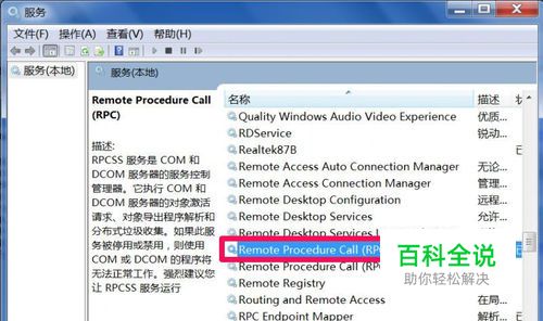 进入系统服务窗口后 ,找到Remote Procedure Call(RPC)这个服务,双击打开属性。