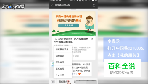 然后打开中国移动10086,点击“我的服务”,选择“个人主页”。