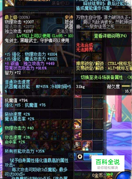 第五选择:释魂之真灵短剑 常驻16%的伤害加成,基础面板属性还是看得过去的,魔法暴击率也比较高的加成。