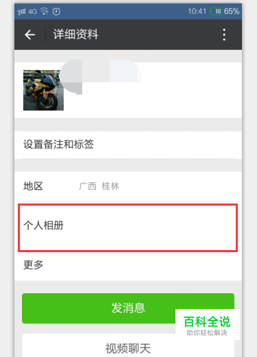 方法1:先点击进入 微信个人详细资料,点击个人相册 如果好友相册是空白那就有可能删除了你?(如果好友没有个人相册,我们可以在进行方法2的操作)