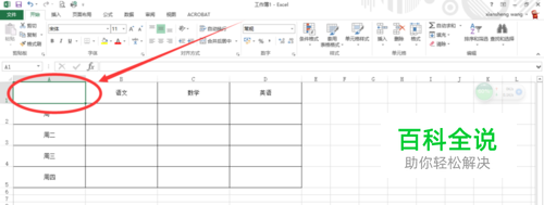 单元格出现对角斜线,如图一。 点击单元格,输入“科目”。