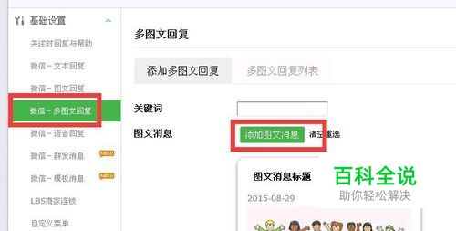 第四步,设置图文回复,编辑好图文,可以用在下边多图文回复,多图文是图文信息的组合,设置好单图文可以直接用在多图文里。