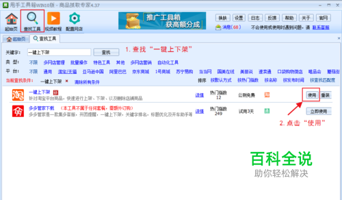 在甩手工具中找一键上下架商品工具。点击使用。