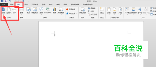 打开word软件,编辑文档,插入封面时,首先在菜单栏选择 插入选项,再选择 页面板块。