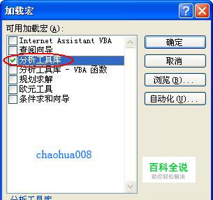 在菜单上按"工具-加载宏",调出加载宏窗口,从中勾选"分析工具库",确定.