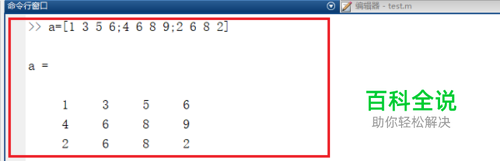 第一步打开matlab,在命令行窗口中输入a=[1 3 5 6;4 6 8 9;2 6 8 2],创建一个3行4列的矩阵,如下图所示:
