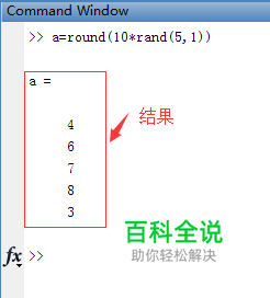 首先随机产生一组数据作为例子,在这里,我们随机产生一组数据,并将其圆整为整数,方法是: a=round(10*rand(5,1))