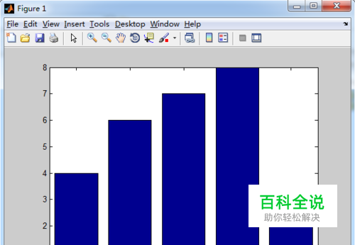 在这里,我们可以自己定义直方图的宽度,系统默认的宽度为0.8,因此,我们可以依据默认的宽度设置自己想要的宽度,例如,在本例中我将宽度设置为0.5, bar(a,0.5)