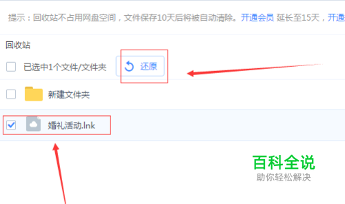这时候就会跳转到浏览器打开回收站,并且可以看到最近10天删除的文件(会员为15天)。