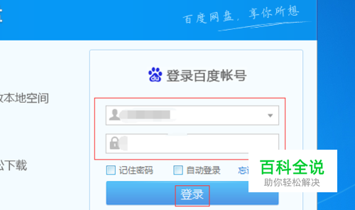 首先,我们双击电脑桌面的百度云盘快捷方式,进入到登录页面,然后输入账号和密码,点击登录就可以了。