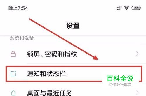 第二步,点击通知和状态栏,如下图
