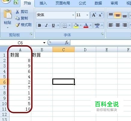 首先,我们来看这组数据。 从单元格A2:A11,是10个随机数字。