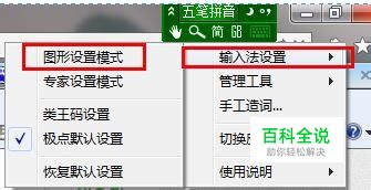 在极点五笔上点右键,选择输入法设置-图形设置模式。