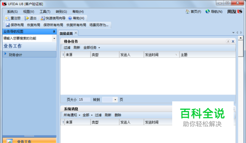 点击“业务工作”选项卡。如图按“财务会计”→“总账”→“账表”→“科目账”→“总账”的顺序分别双击各菜单。(注意:在双击打开“总账”菜单时,可能会出现提示需要修改系统的日期分隔符,这时需要在Windows系统内修改,具体操作可以参见本系列第98篇经验“设置系统日期分隔符”。)