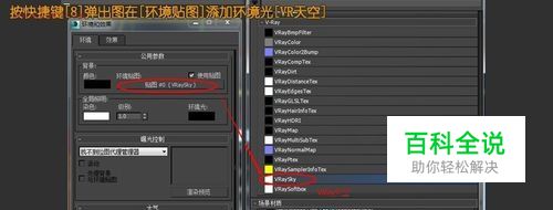 按快捷键[8]弹出图在[环境贴图]添加环境光[VR天空]。