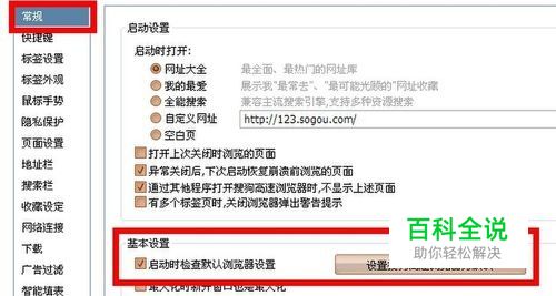 打开桌面的浏览器 -浏览器选项-常规 在设置xx浏览器为默认浏览器之前打勾。