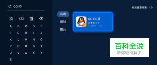 首先连接网络打开电视上的当贝市场,搜索QQHD,将会出现电视版QQ的搜索结果