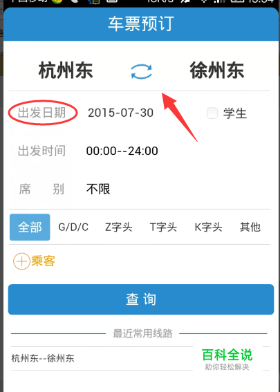 输入出发城市和到达城市,如杭州道徐州。并输入出发日期,如7月31号,点击搜索。