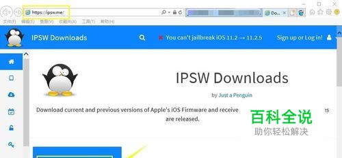 打开你的电脑上的浏览器,输入ipsw.me/回车,如下图所示