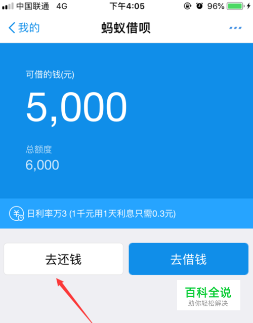 打开蚂蚁借呗后,我们点击页面如图所示的去还钱