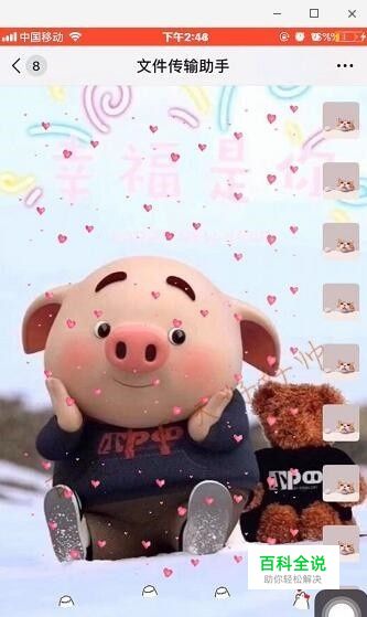 选择“斗图”,然后往下拉,找到“满屏爱心”,选择爱心、猫爪爱心,把它们收藏或保存起来。