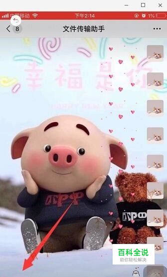 进入微信聊天界面,将爱心表情包多发几次,猫爪爱心放最下面,发完后长按表情包,将其收藏。