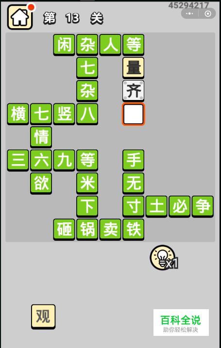 首先我们进入到微信成语小秀才的第13关,如图所示;