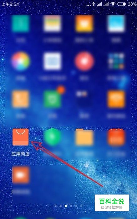 在手机上左右滑动屏幕,在屏幕上找到小米手机的“应用商店”的图标。
