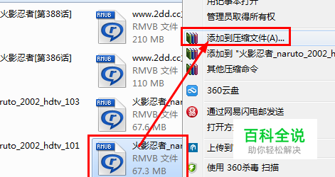 首先,我们找到自己想要加密的视频文件。然后单击右键选择添加到压缩文件。如下图所示:
